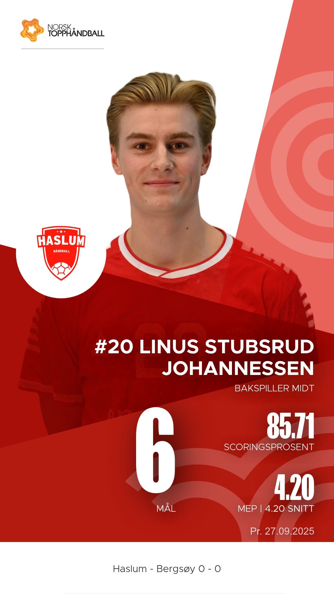 Haslum åpnet kampen med høy intensitet. Publikum fikk se et hjemmelag som tok initiativ, og det var tydelig at Haslum ønsket å bruke tempo og gjennombrudd i angrepsspillet. Midtveis i 1.omgang ledet Haslum 12-6, men Bergsøy kneppet innpå mot pause og Haslum gikk til pause med tremålsledelse. Også i andre omgang startet Haslum bra, og etter under to minutter var de igjen oppe i en seksmåls ledelse. Isac Beyer var nok en gang trygg fra straffemerket, og Martin Jansson holdt trykket oppe på linja.