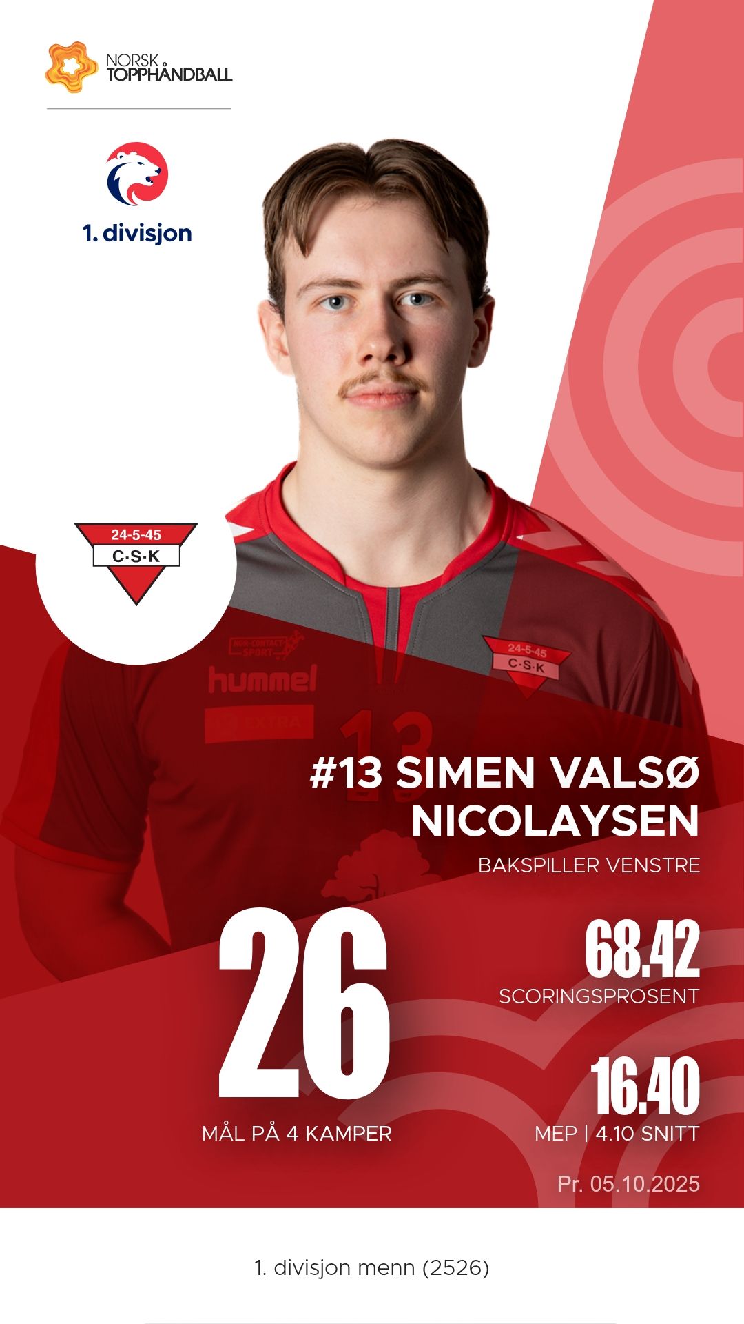 Charlottenlund stiller med flere spillere som kan skape trøbbel for Haslum. Bakspilleren Simen Valsø Nicolaysen har vært lagets mest effektive spiller så langt, med 26 mål på 4 kamper. Lukas Bjerkgård-Lund og Helge Myhrvold Strømman har også vist seg å være effektive og viktige for Charlottenlund.