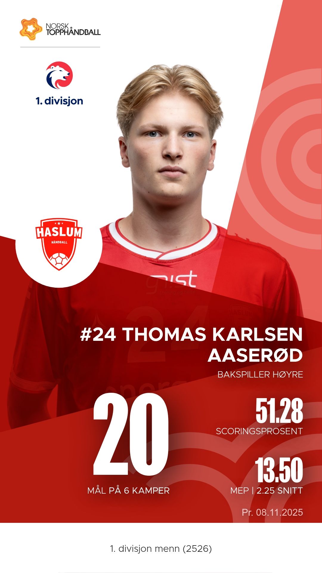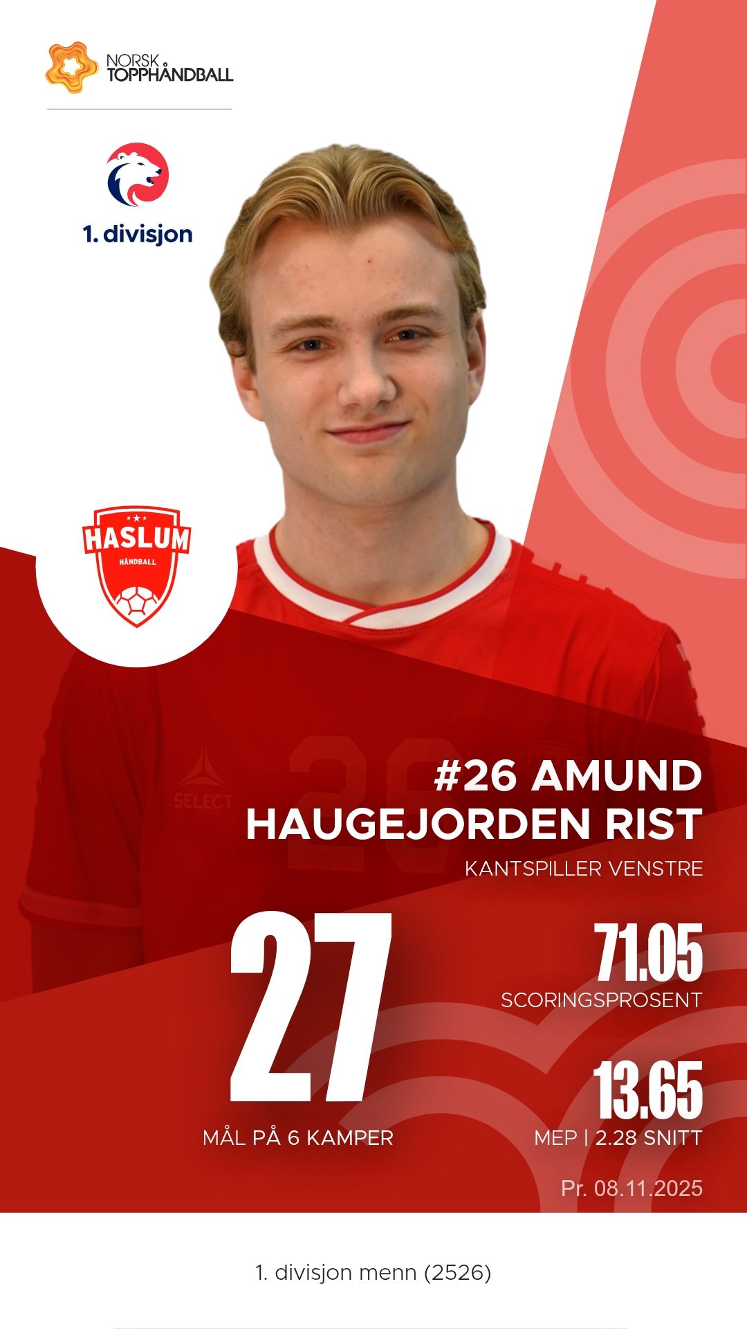Men Haslum har også spillere som kan avgjøre denne typen kamp. Kantspiller Amund Rist har vært en offensiv kraftpakke med imponerende scoringsrate, og bakspilleren Thomas Aaserød styrer rytmen i angrepet med presise pasninger og sterke avslutninger. Linus Johannessen har vært lagets mest effektive spiller så langt, med et bredt register av skuddvarianter og en evne til å skape rom for lagkameratene. Hvis målvakt Nikolai Wiig fortsetter trenden fra forrige kamp med en redningsprosent på nesten 50, så kan dette bli en gøy kamp!